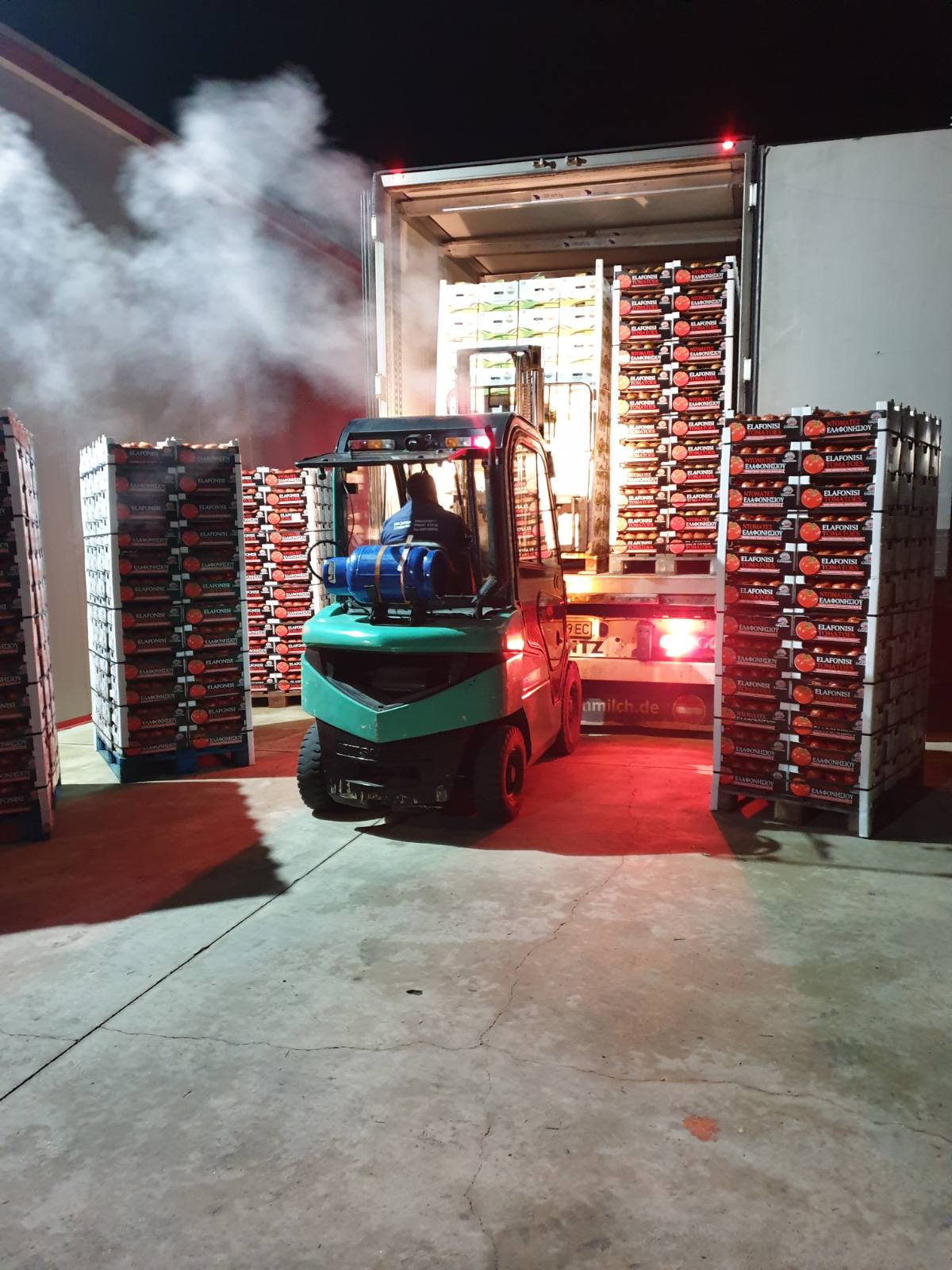 Собствен автопарк от 20 хладилни камиони, от който хенгери, бордови, соло и влекачи.